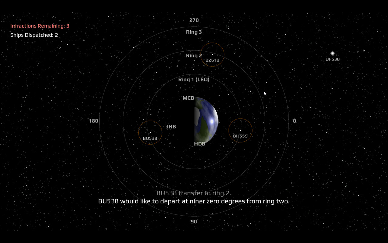 Today, you are the space traffic controller for earth orbit. Direct the ships taking off, arriving, landing, and departing. Prevent them from getting too close to each other, or you’ll be fired for your unsafe behavior.